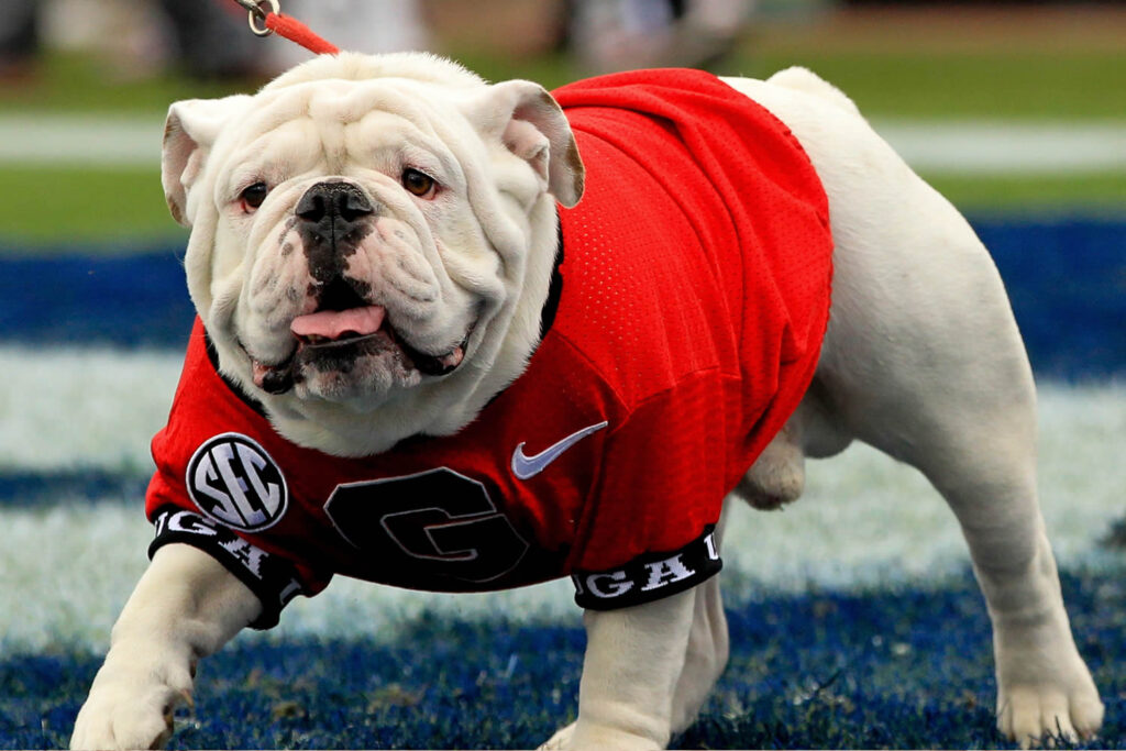 - Uga – University of Georgia: English Bulldog, direct lineage, live mascot since 1956.